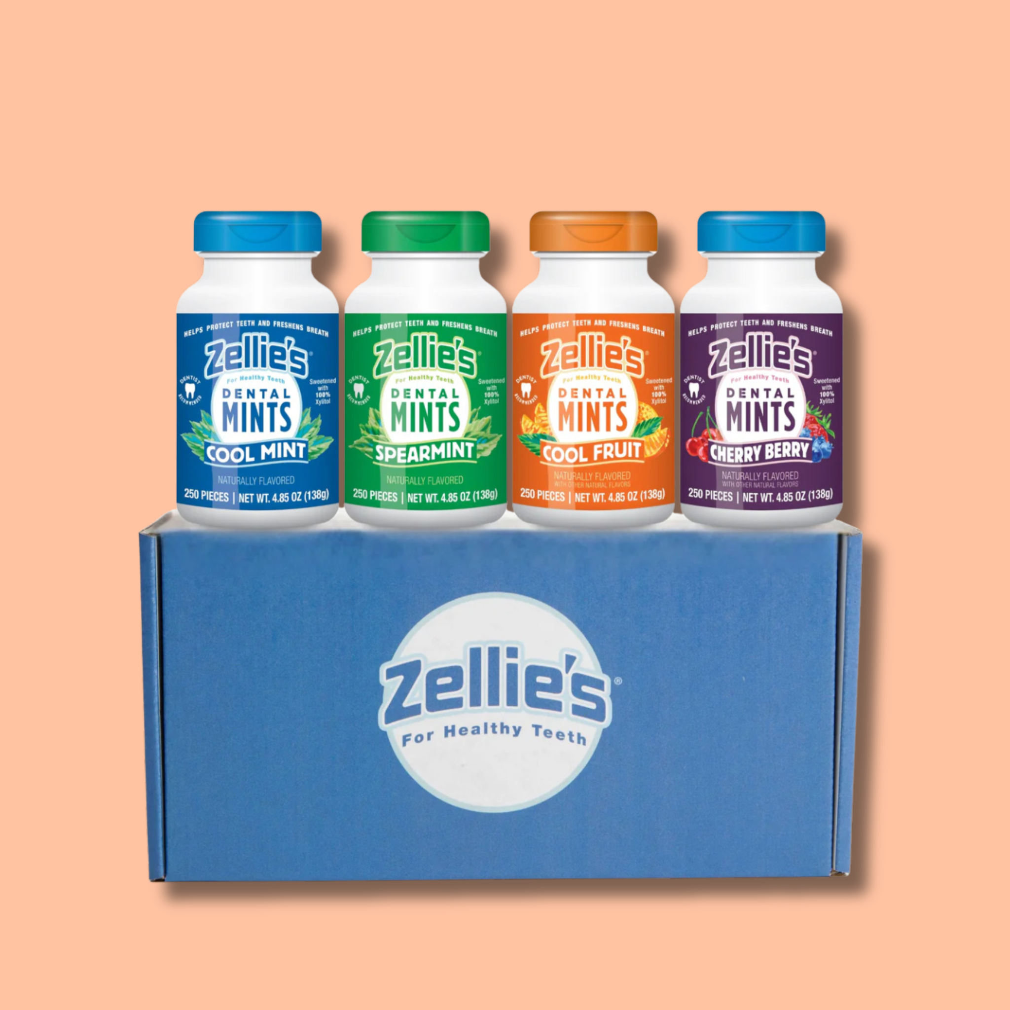 A healthy life starts with a healthy mouth. Zellie’s is sweetened with 100% xylitol to freshen breath and help protect teeth so you never have to choose between health and great-tasting gum or mints.