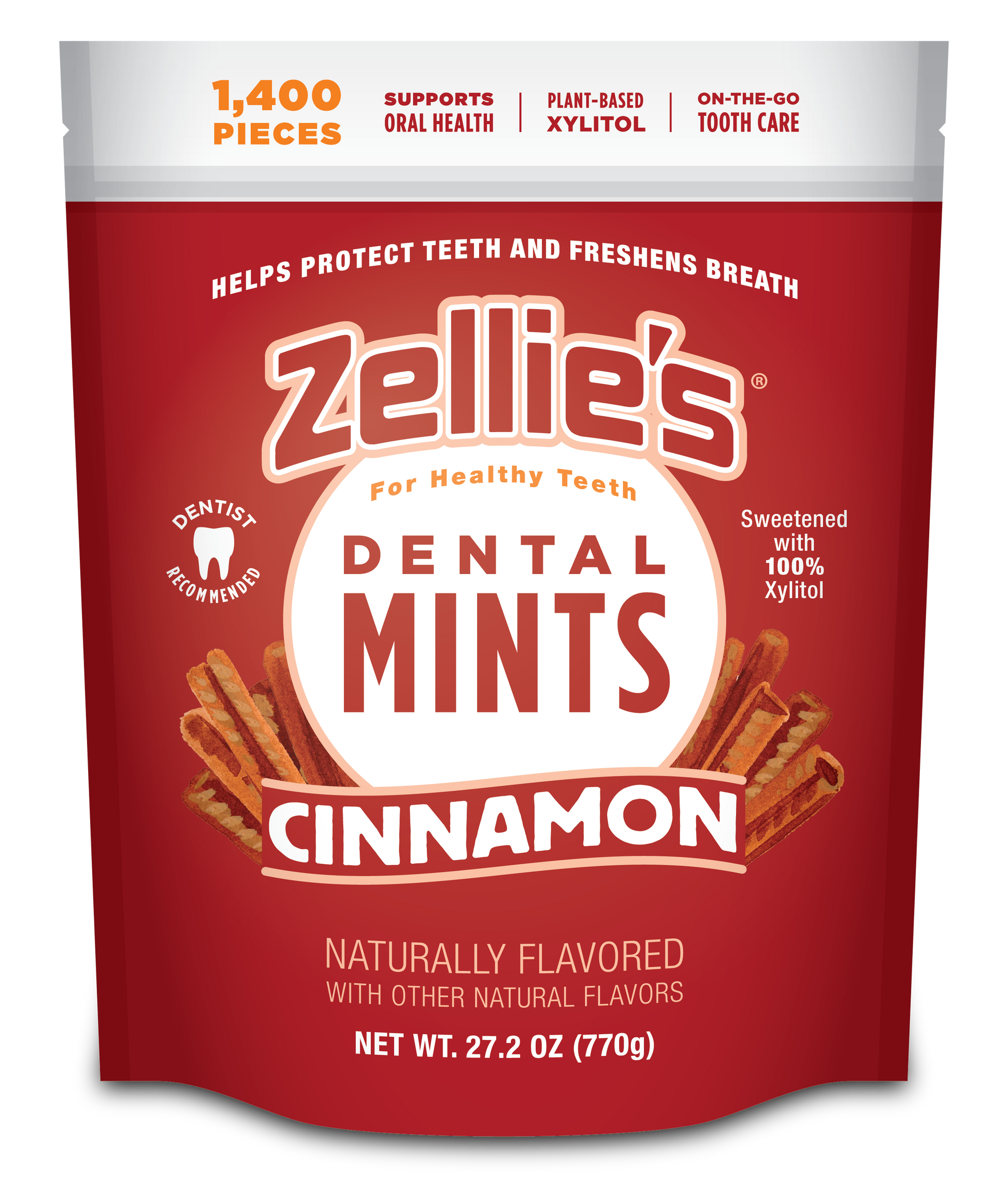 Zellie’s mints are sweetened with 100% tooth-friendly xylitol and each mint contains 0.55 grams of xylitol.